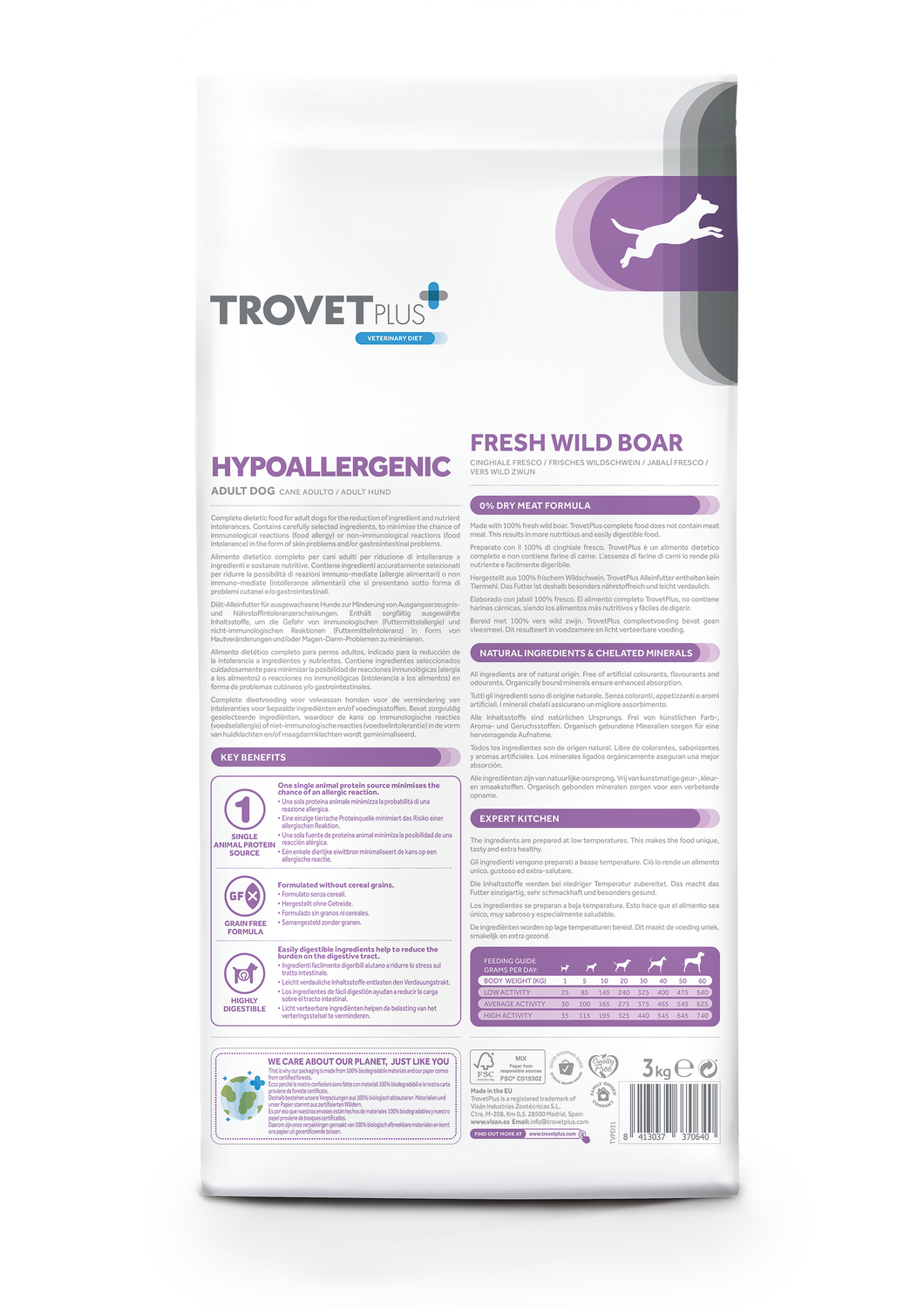 Hypoallergen, reich an Eiweiß, arm an Phosphor und mit hoher Schmackhaftigkeit.