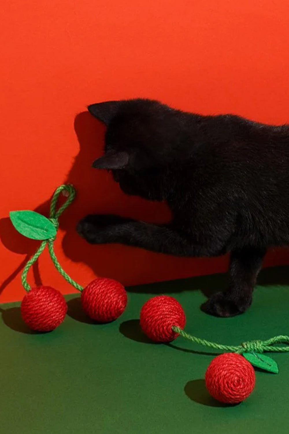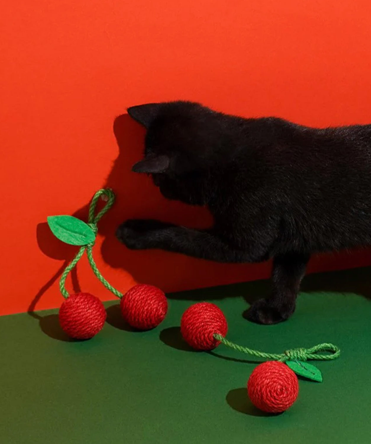 El Cherry Jute Ball Toy trae un toque de fruta fresca al juego de tu gato. Con su encantador diseño de cerecitas unidas por una cuerda y su textura natural de yute, estas bolitas están listas para ser perseguidas, rodadas y cazadas sin parar.