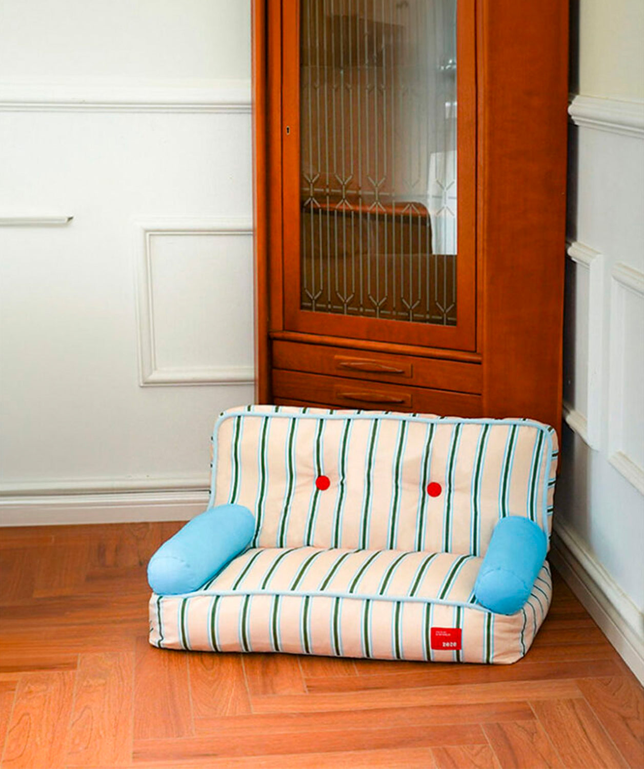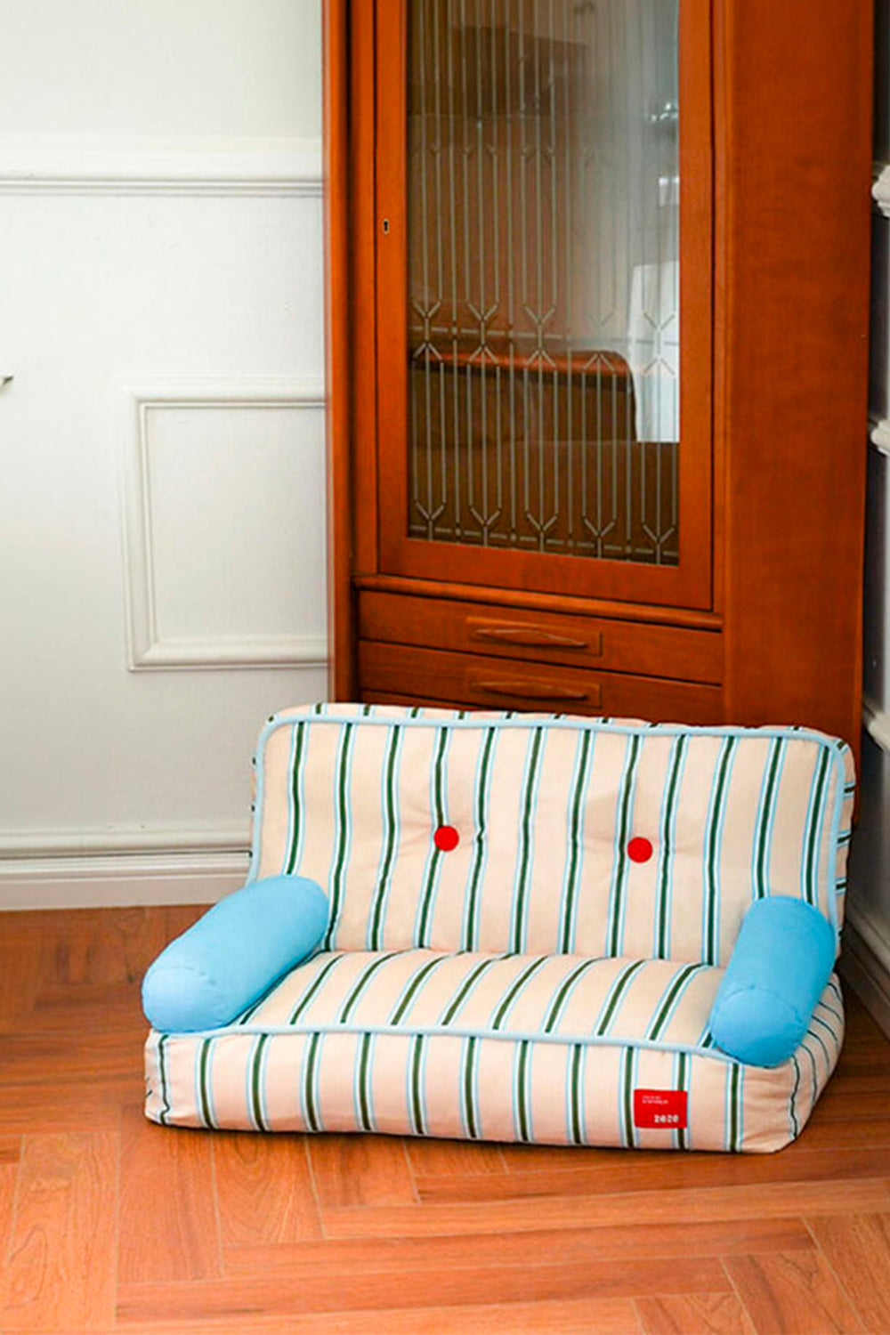 El Sleepy Tiger Mat combina estilo y suavidad en un diseño de sofá acolchado que encanta tanto a gatos como a perros. Su tapizado con rayas clásicas y detalles de color lo convierten en un accesorio práctico y bonito para cualquier rincón de tu hogar.