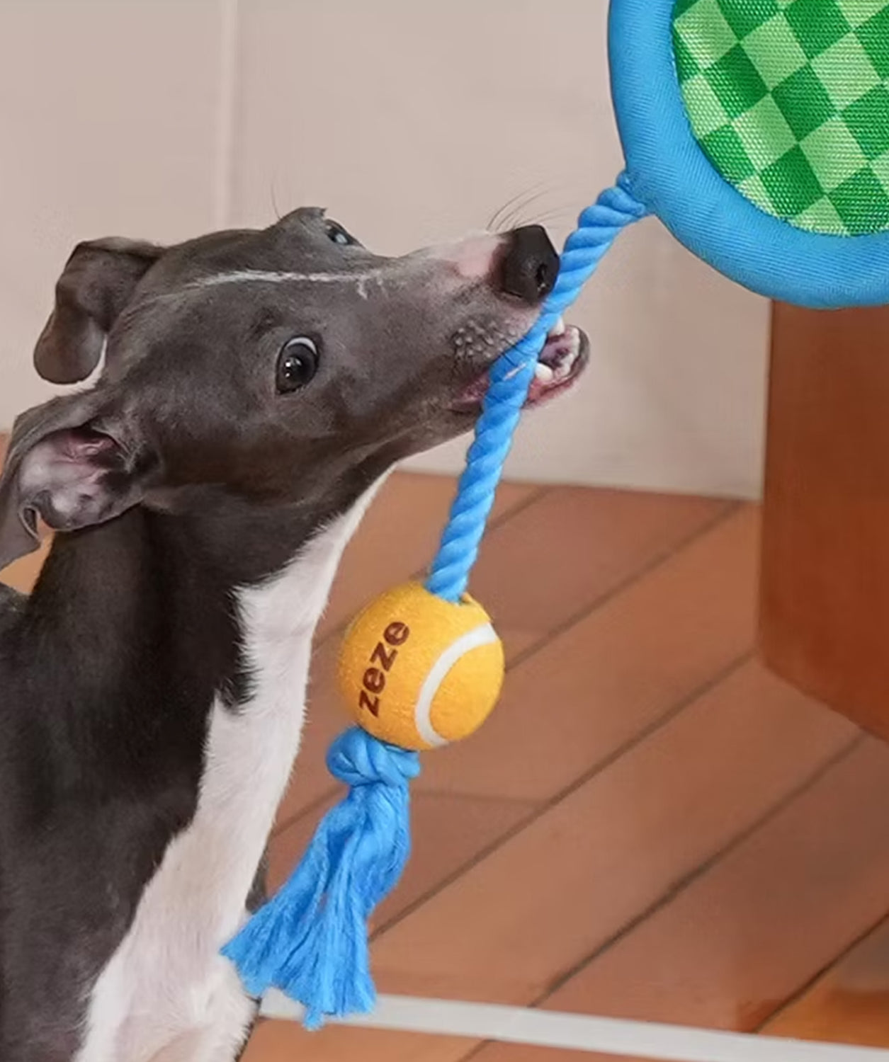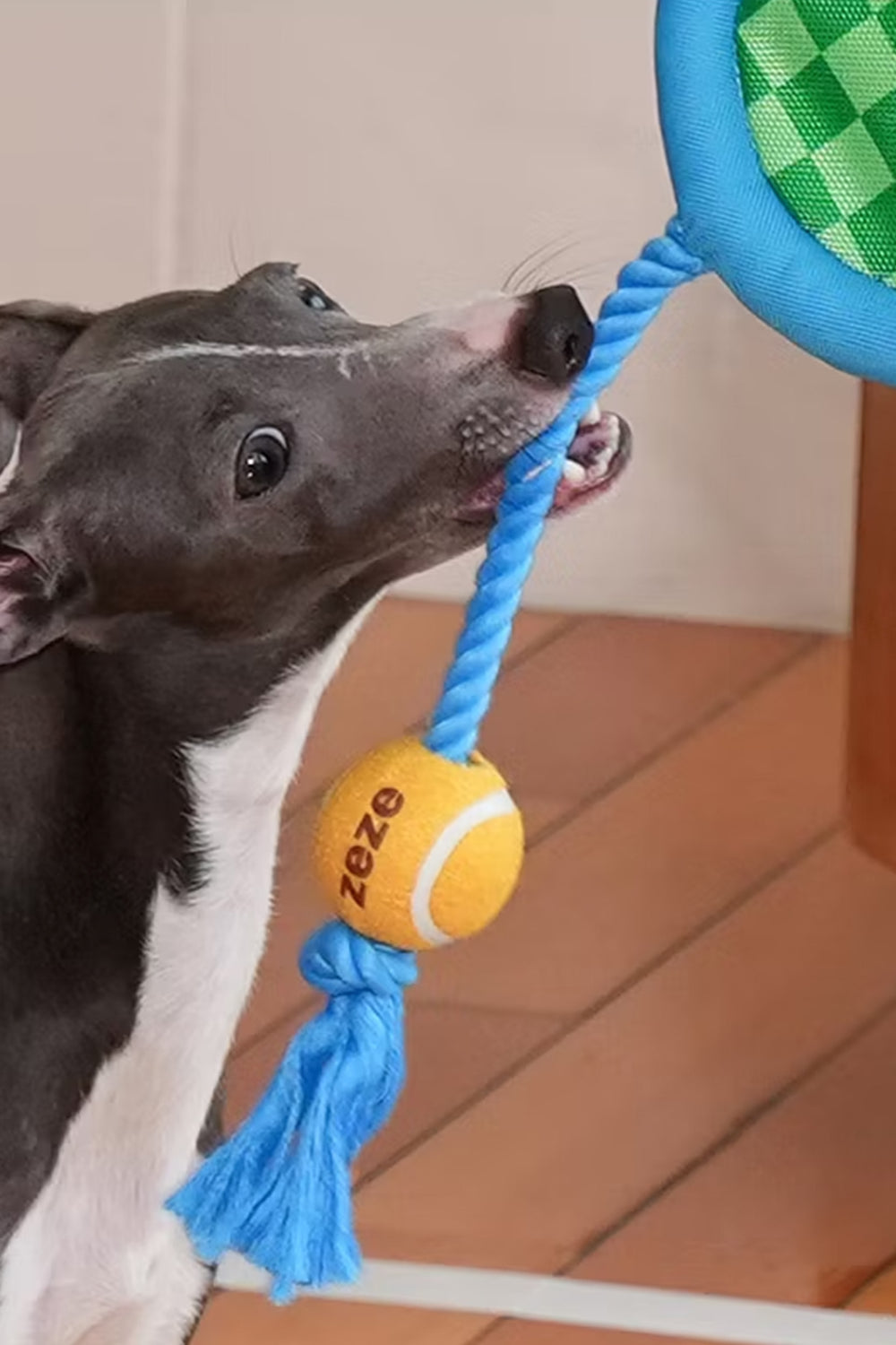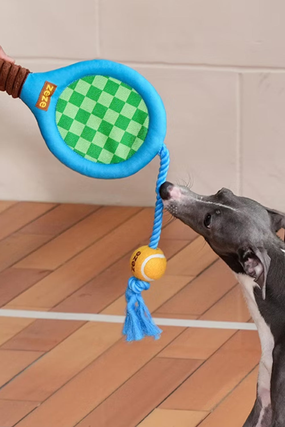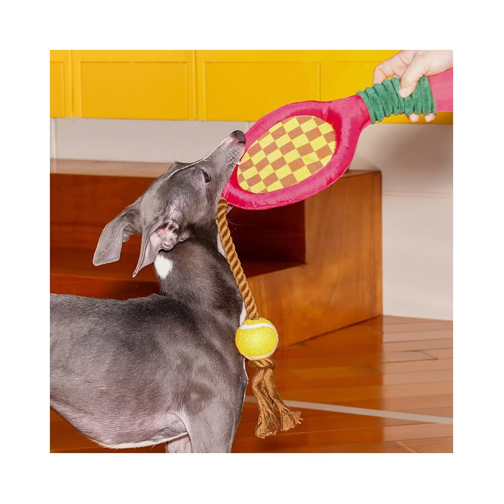¡Dale un toque deportivo y divertido a la colección de juguetes de tu perro con la Raqueta de Peluche! Con forma de raqueta de tenis y un resistente mango de cuerda anudada, es perfecta para perros que adoran tirar, morder y buscar. La cabeza de peluche es suave con los dientes y encías, mientras que la cuerda añade agarre y textura para horas de juego interactivo.