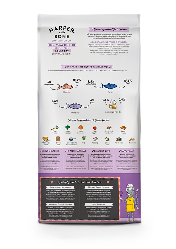 Basso in carboidrati, ricco di proteine e acidi grassi essenziali omega-3 EPA e DHA che aiuteranno a promuovere una pelle e un pelo molto sani.