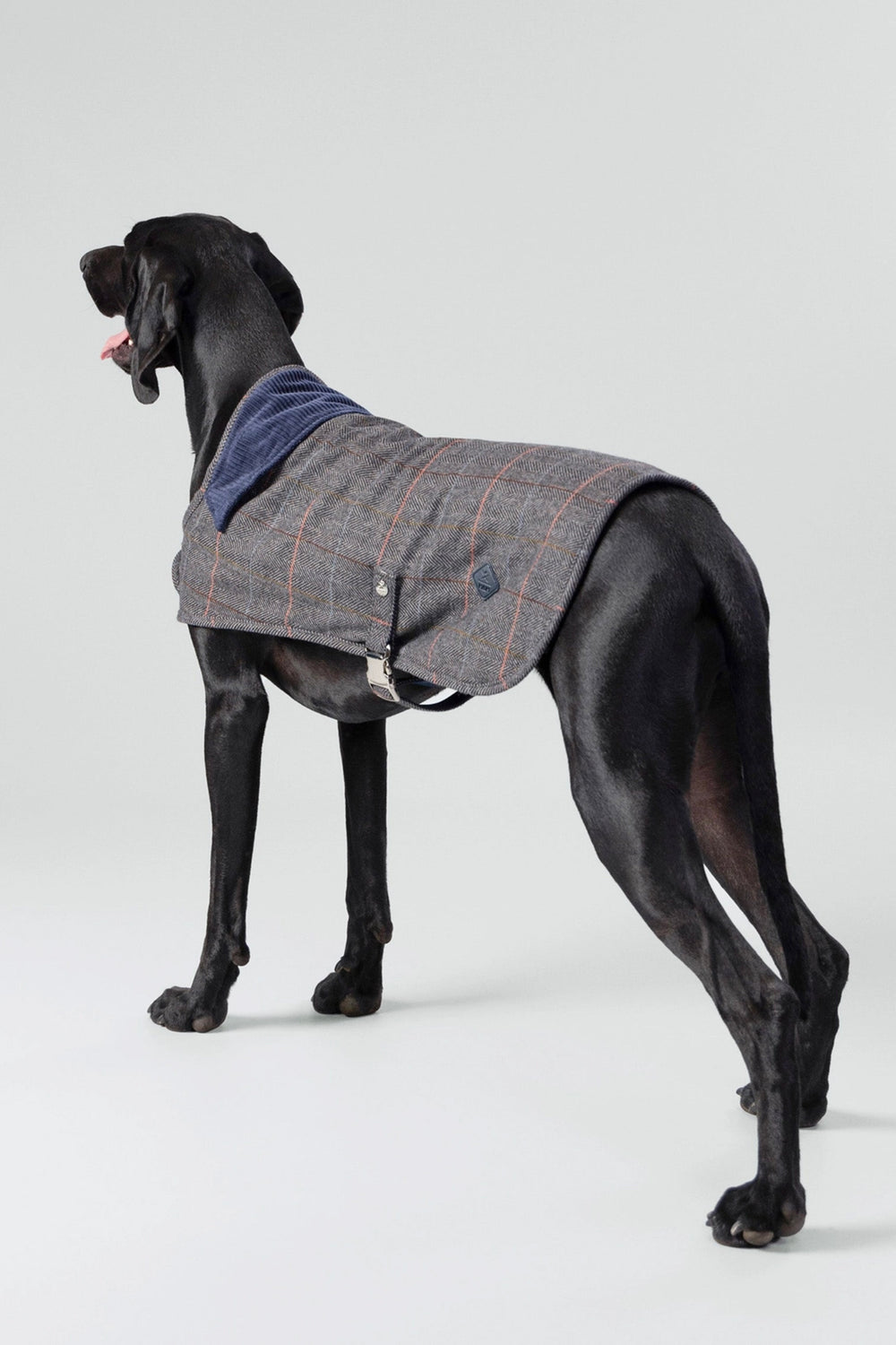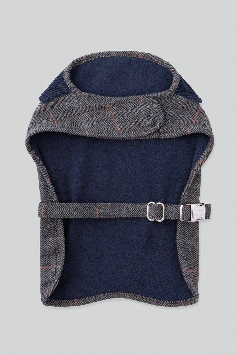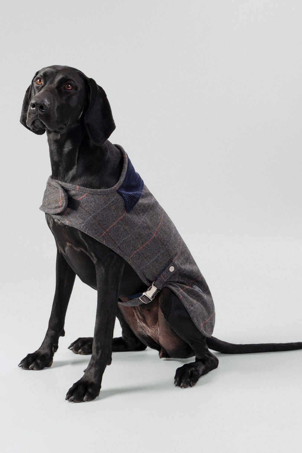 Hackett x Hugo & Hudson. Gemaakt van traditionele tweedstof, combineert dit jasje de zachtheid van wol met het comfort van polyester. Het kledingstuk heeft een speciaal grijs tweedpatroon op een elegante geruite visgraatprint, een corduroy overhemdkraag en een fleecevoering om je huisdier warm te houden.