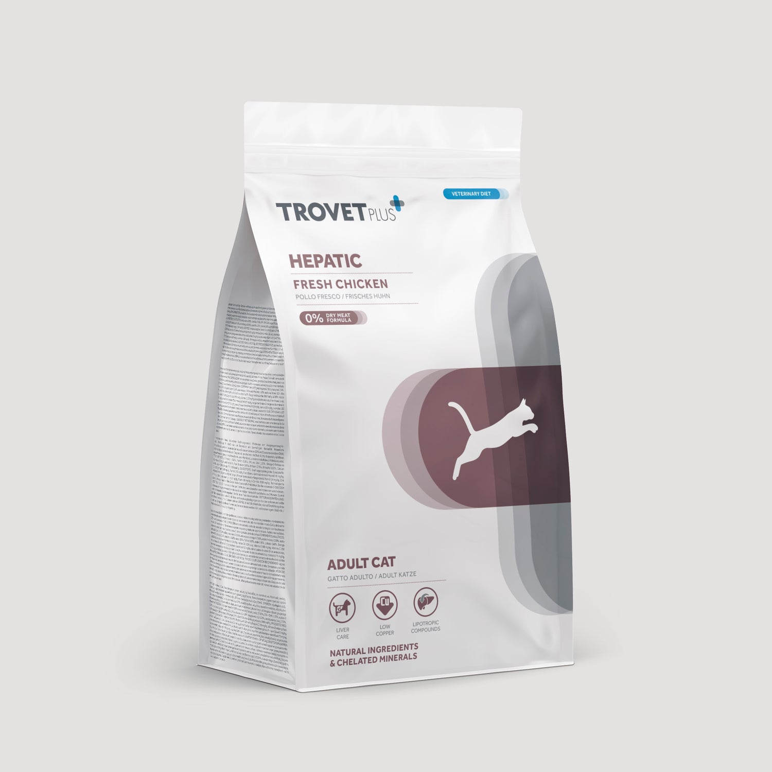 Volledig dieetvoer voor volwassen katten, bedoeld ter ondersteuning van de leverfunctie bij leverinsufficiëntie.