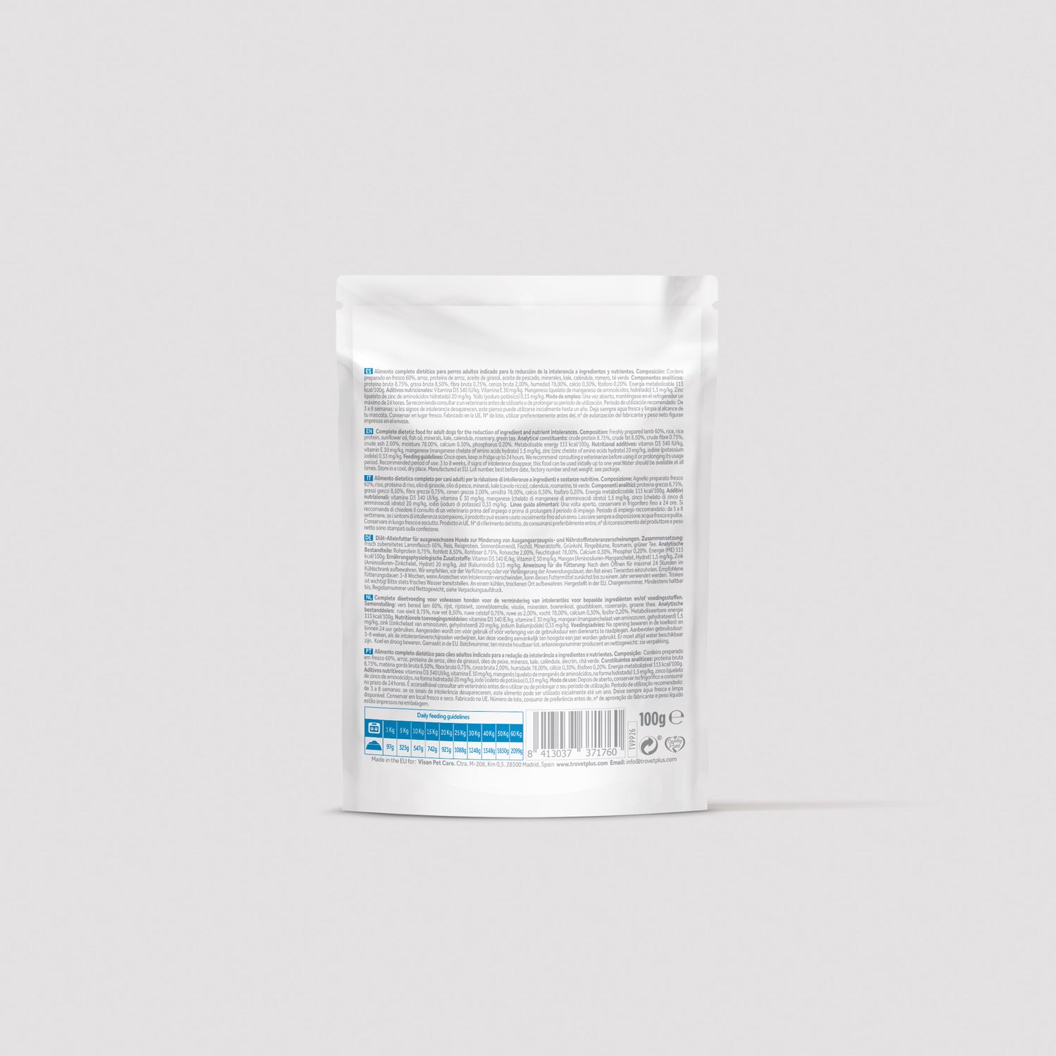 Bevat zorgvuldig geselecteerde ingrediënten om de kans op immunologische reacties (voedselallergieën) of niet-immunologische reacties (voedselintoleranties) in de vorm van huid- en/of maagdarmproblemen te minimaliseren.