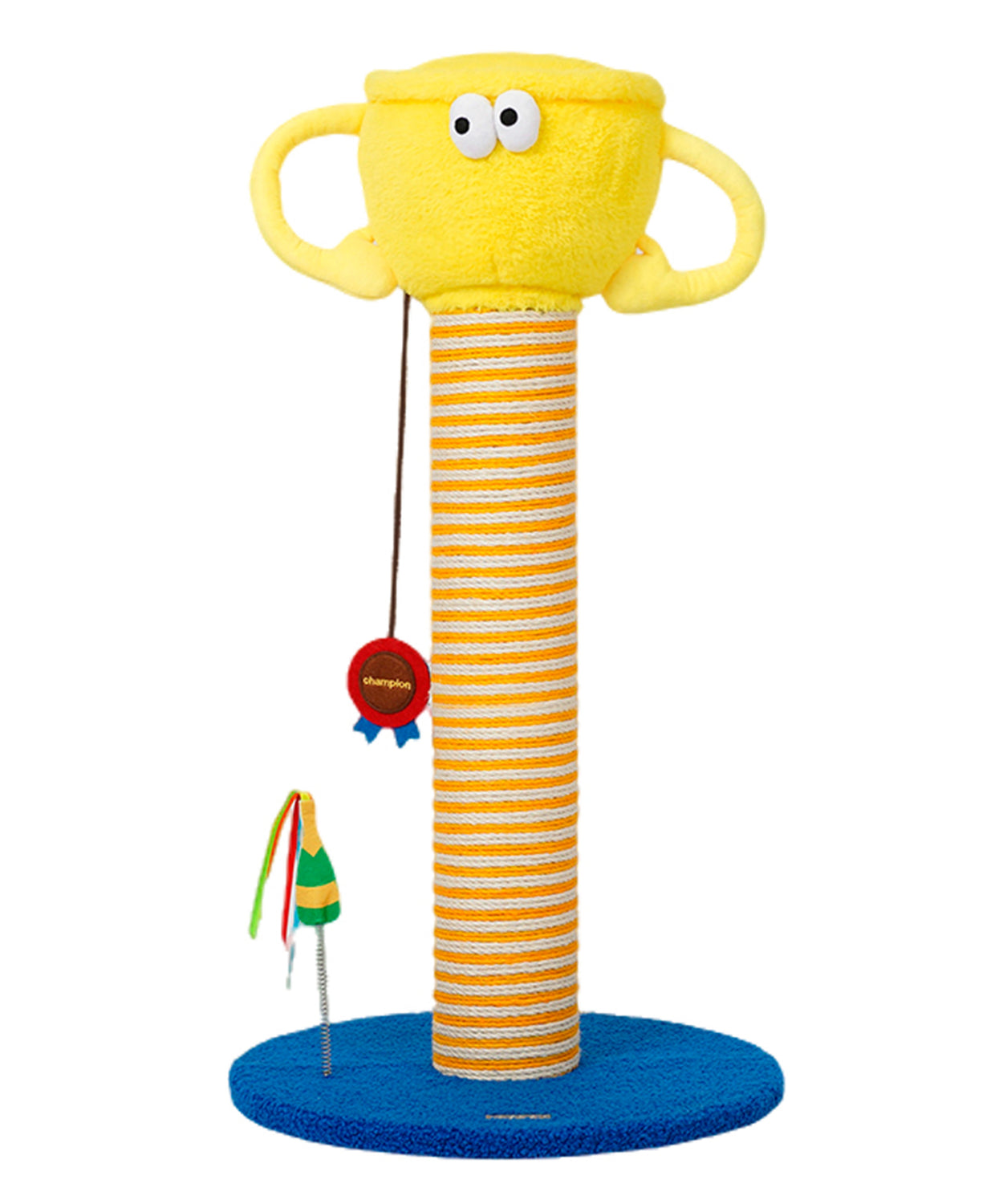 Sus diferentes niveles permiten que tu minino trepe y explore, mientras que los postes forrados en cuerda y felpa lo invitan a rascar y mantener sus uñas saludables. La casita elevada es ideal para que se sienta seguro y observe todo desde lo alto, y los pequeños detalles decorativos le dan un toque alegre y original a tu hogar.