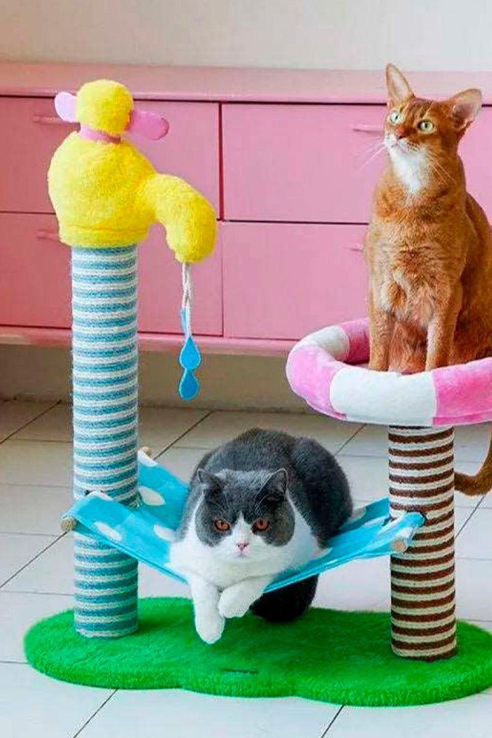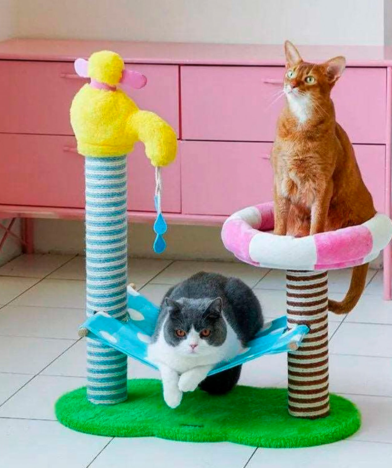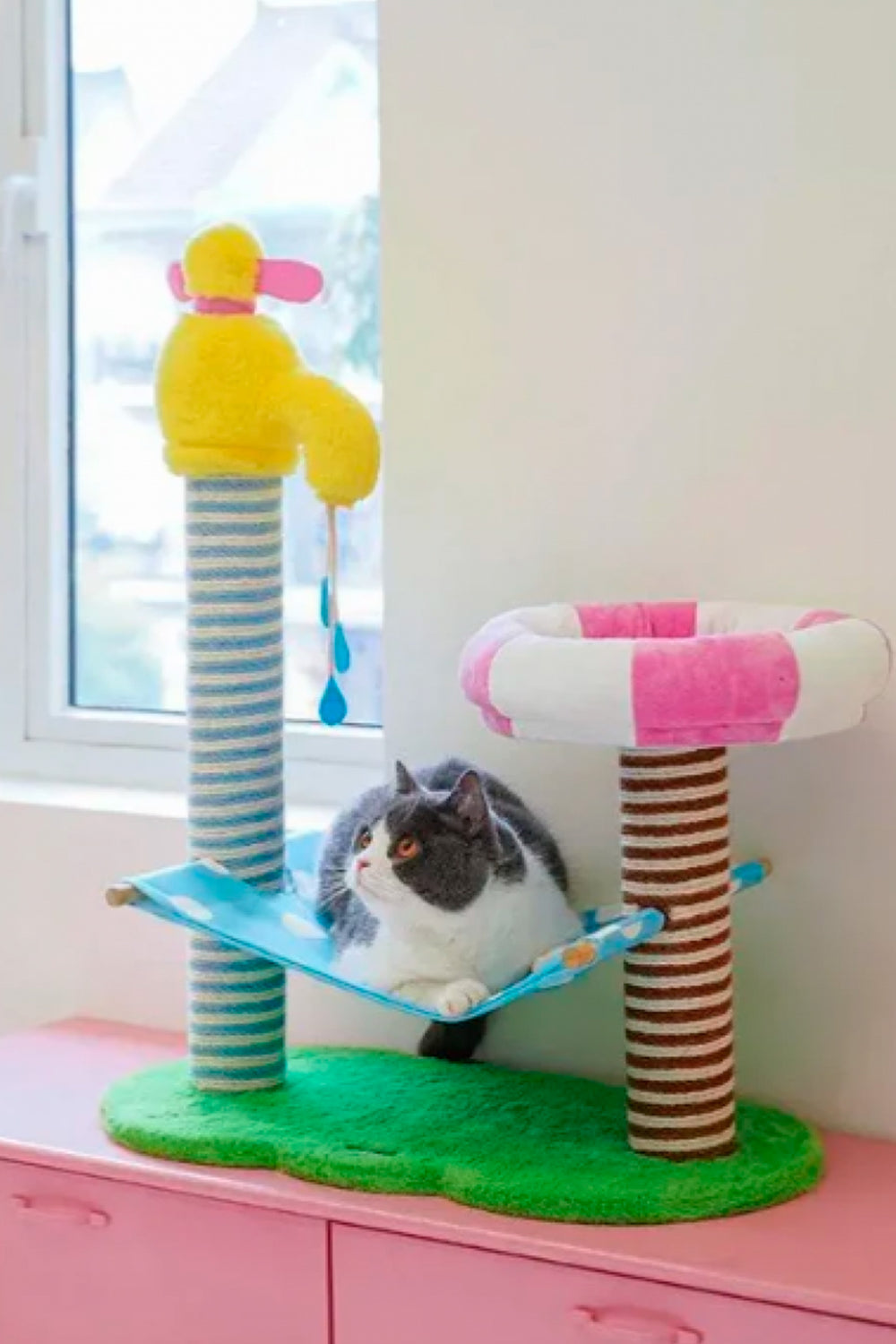 El Bath Tap Cat Tree ofrece un espacio amplio y divertido para que los gatos puedan saltar, trepar y relajarse. Su diseño creativo, inspirado en un grifo de baño, aporta un toque único y alegre a cualquier hogar mientras estimula la curiosidad y el juego felino. Equipado con postes de rascado, una hamaca suspendida y una cama acolchada, combina descanso y entretenimiento en un solo producto.