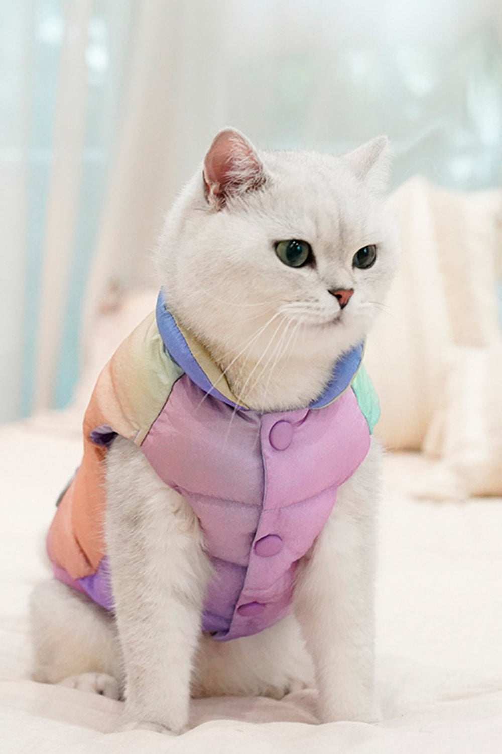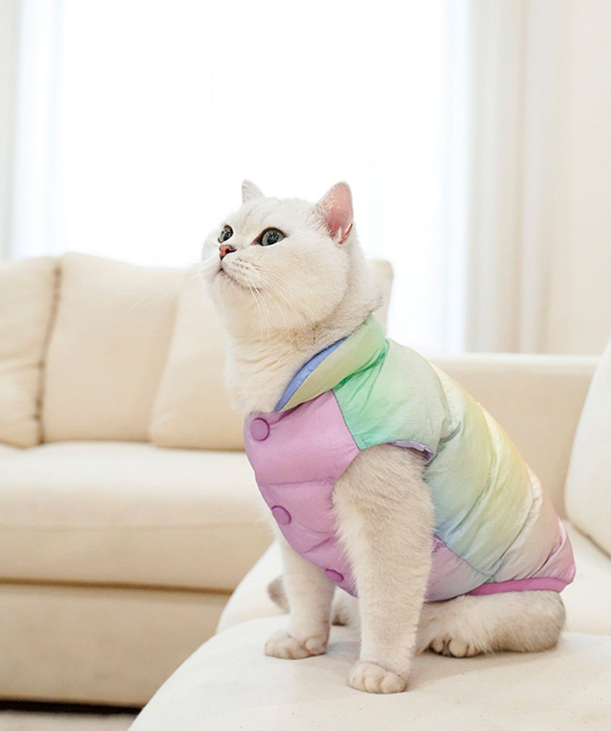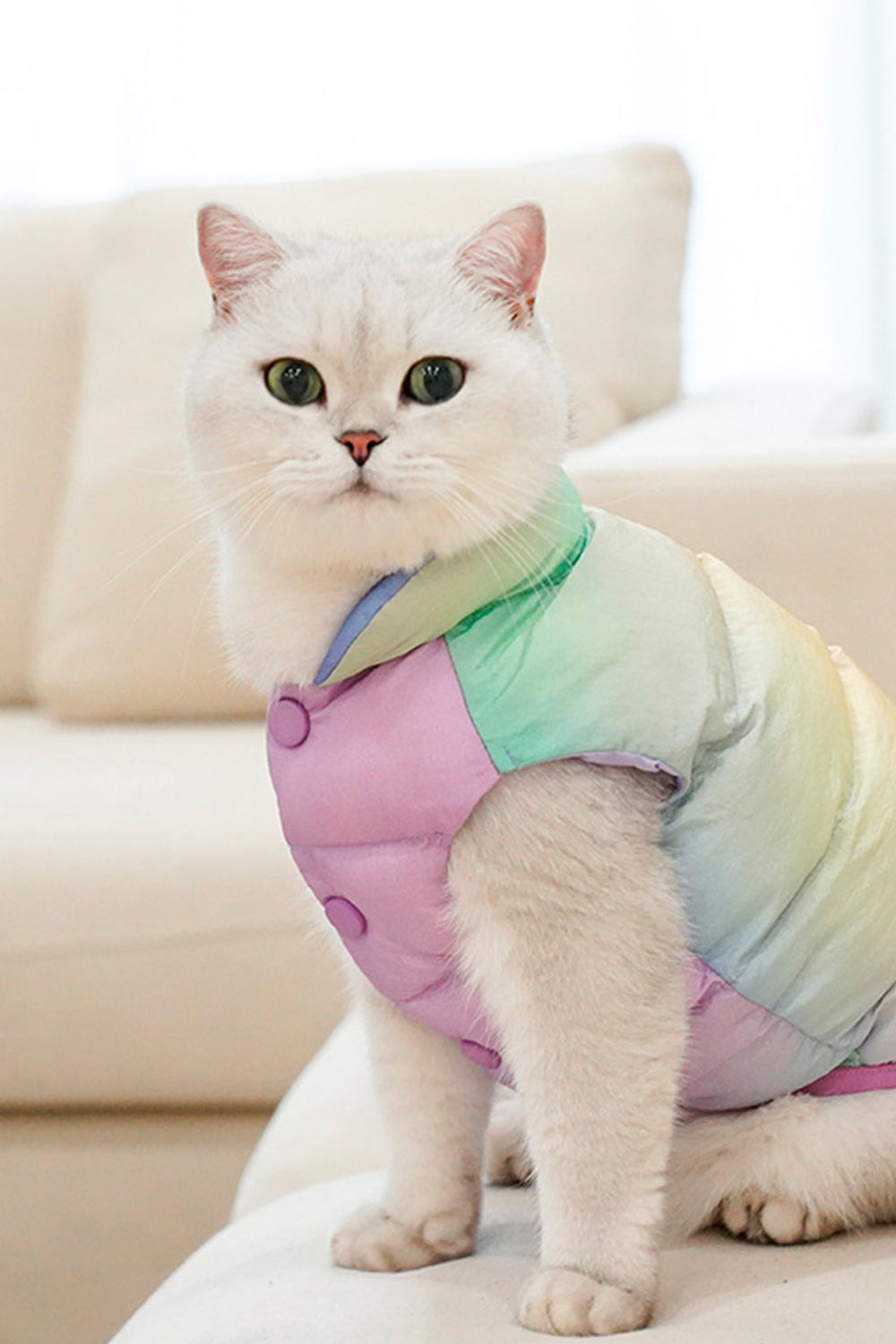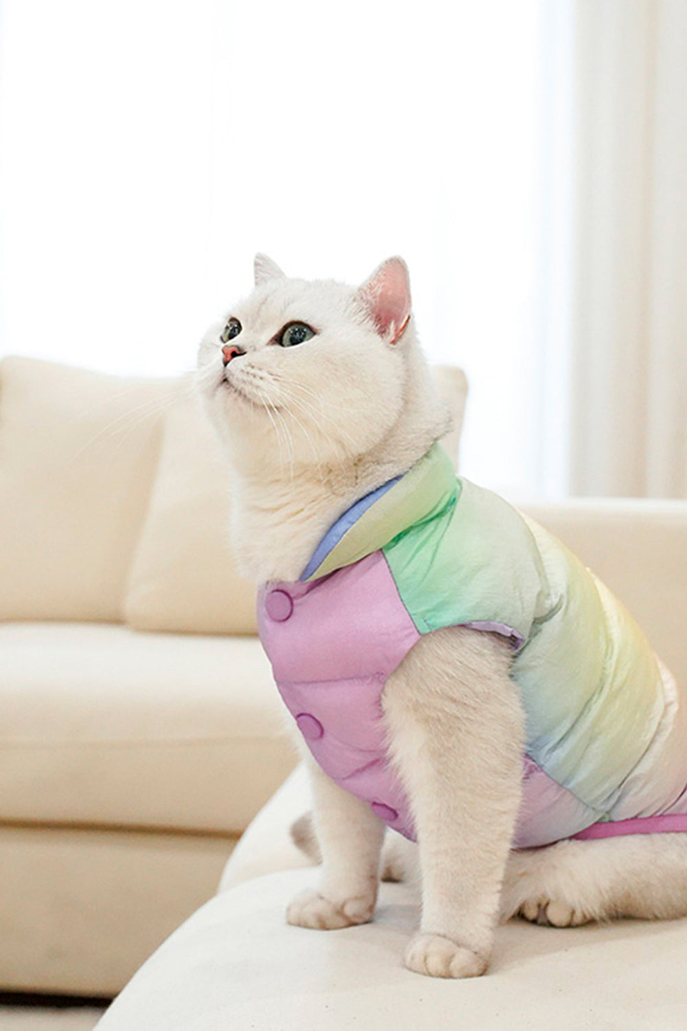 El Lunar Padded Coat es la prenda ideal para que tu mascota disfrute del invierno con estilo y comodidad. Diseñado con un acolchado ligero y suave, ofrece una cálida protección en los días fríos sin sacrificar libertad de movimiento. Su diseño en tonos degradados lunares añade un toque moderno y encantador que hará que tu gato o perro pequeño destaque en cada paseo o reunión.
