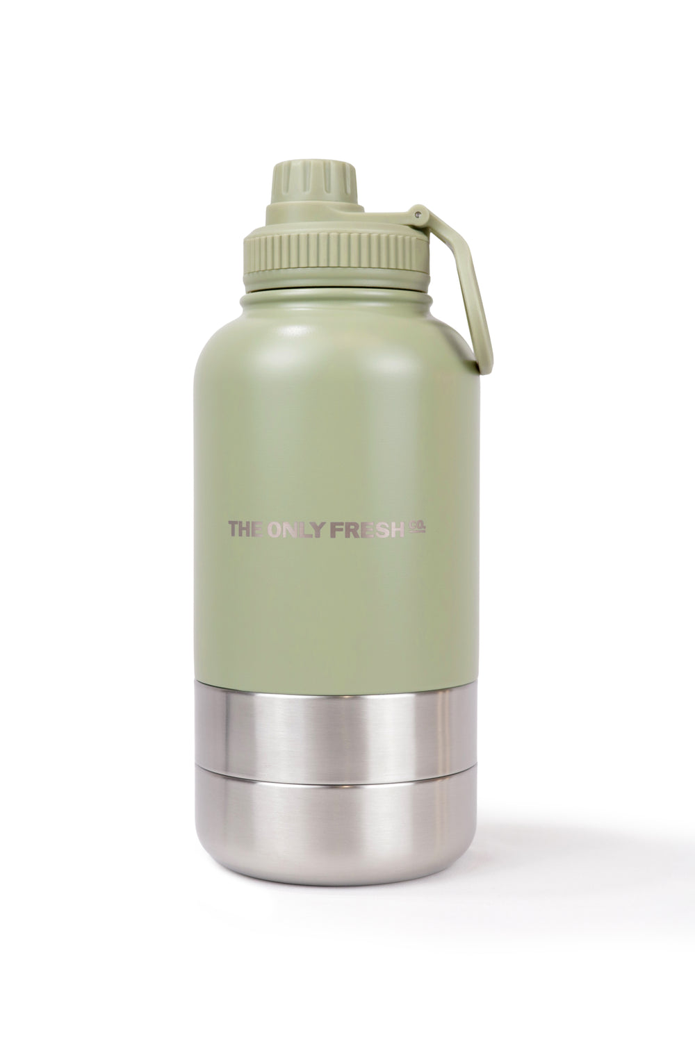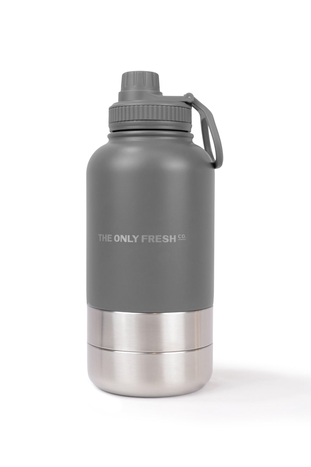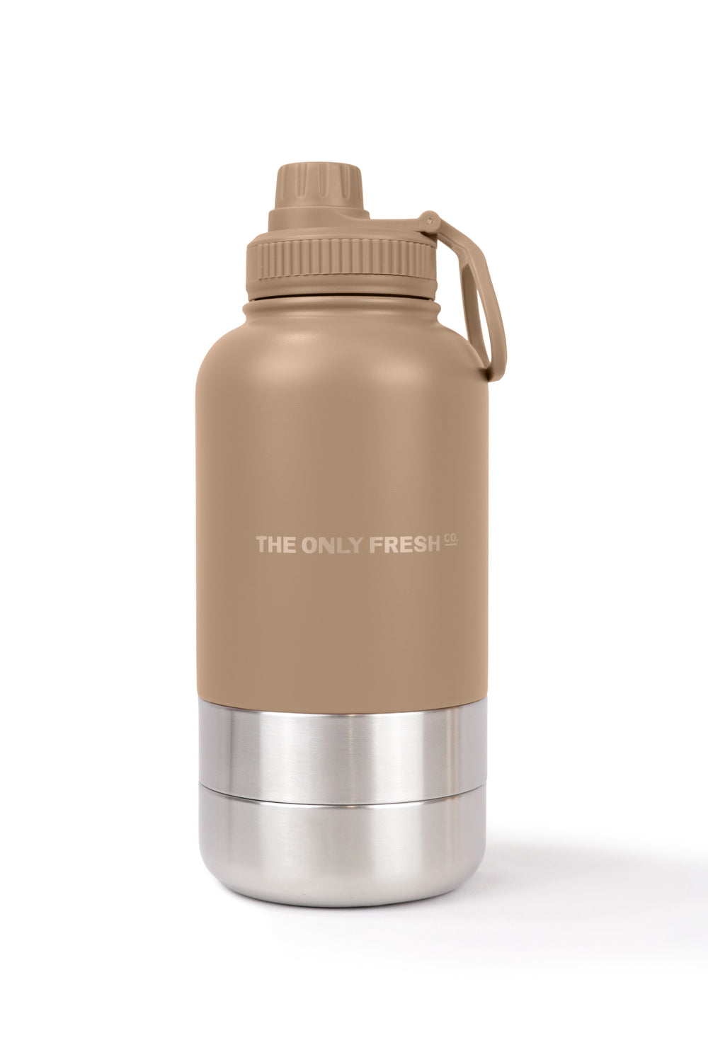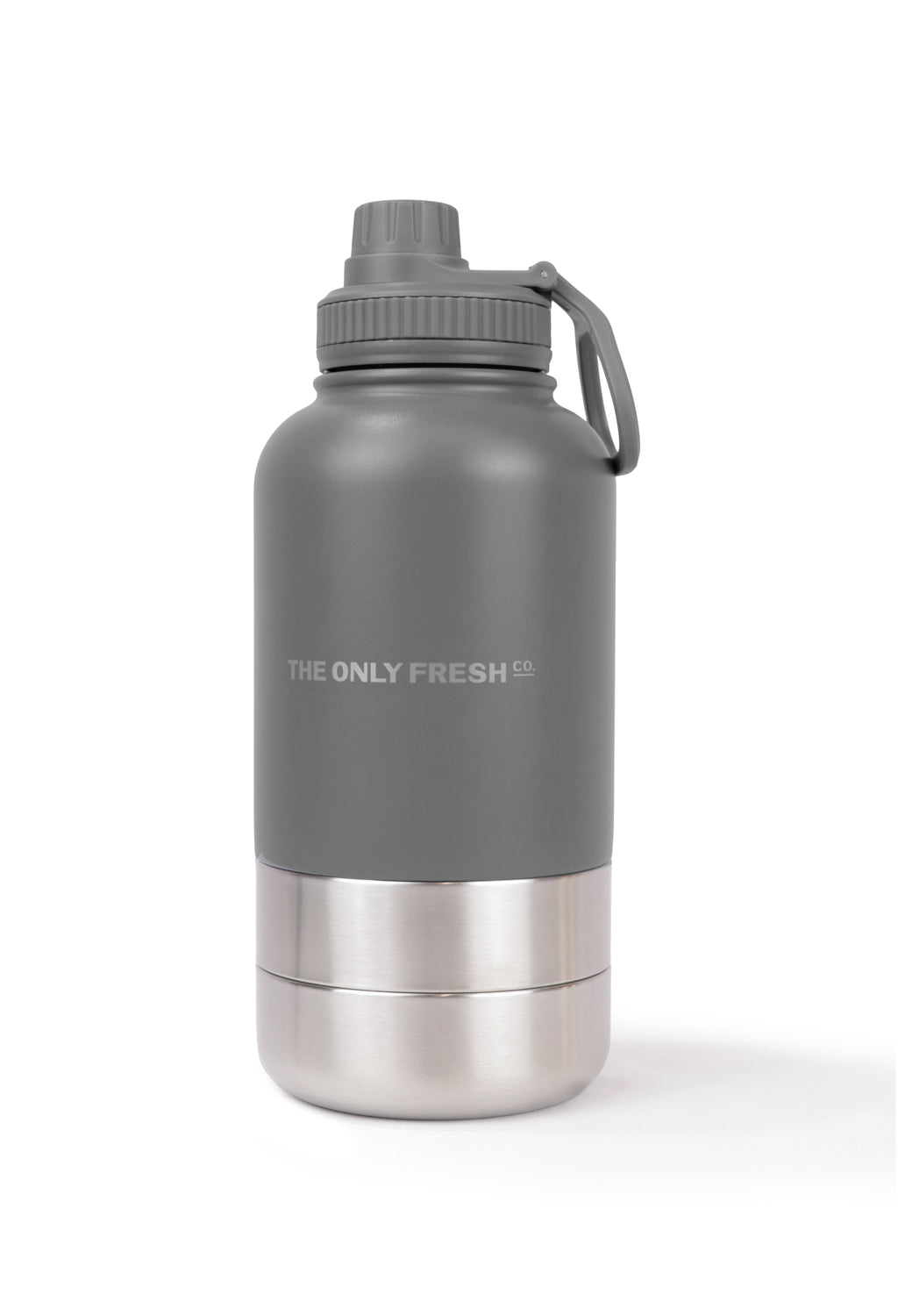 Botella de agua portátil para perros, perfecta para mantener a tu mascota hidratada en cualquier momento. Fabricada en acero inoxidable y materiales resistentes, incluye dos tapas multifunción: una que sirve como cuenco para beber cómodamente y otra que puede usarse para llevar un snack. Práctica y ligera, es el accesorio ideal para paseos, excursiones o viajes con tu mejor amigo.