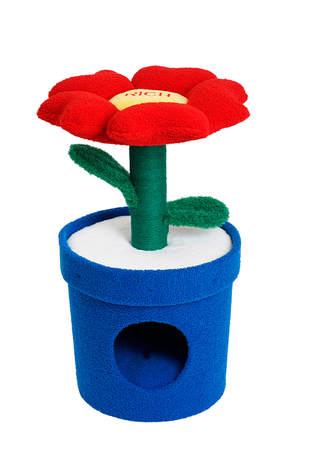 La Rich Pot Flower Cat House es un espacio lleno de color y creatividad, diseñado para que tu gato disfrute al máximo. Con forma de maceta azul y una gran flor roja en la parte superior, ofrece un lugar divertido y acogedor que combina juego y descanso.