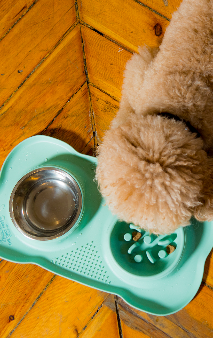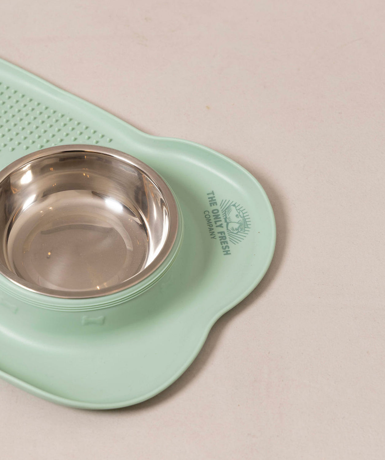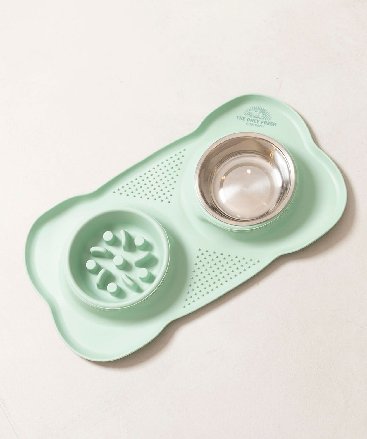 Elegante y práctico Ccmedero lento de Silicona con bowl. Cuenta con un exclusivo diseño para The Only fresh en color menta pastel. Ideal para dueños de perros, este comedero promueve una alimentación más lenta y saludable. Su tapete antideslizante con diseño de laberinto y bordes elevados mantiene el suelo limpio y reduce los derrames. Incluye un tazón de agua de acero inoxidable removible.