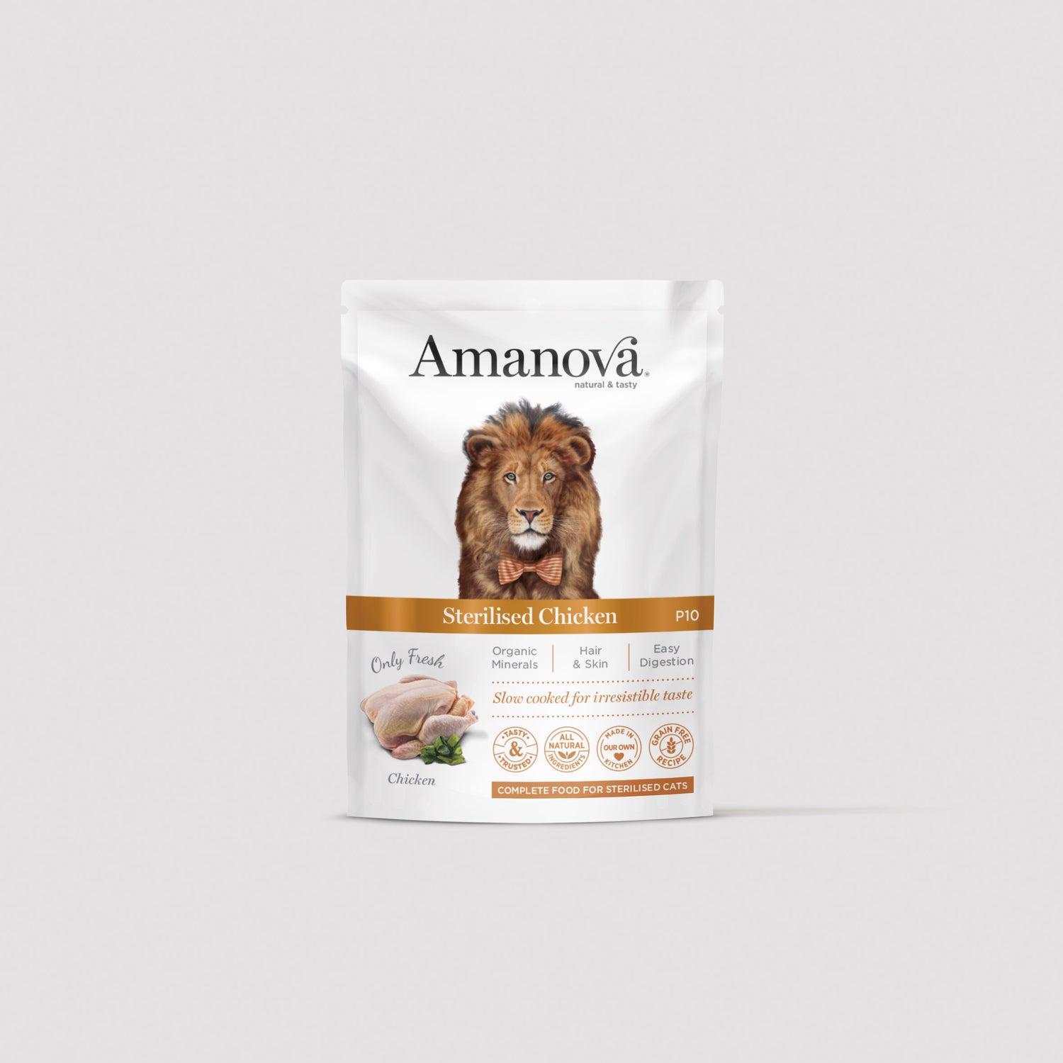 Ideal para mascotas esterilizadas, esta deliciosa comida húmeda para gatos es nutricionalmente completa, no contiene cereales y está elaborada con pollo fresco de primerísima calidad.