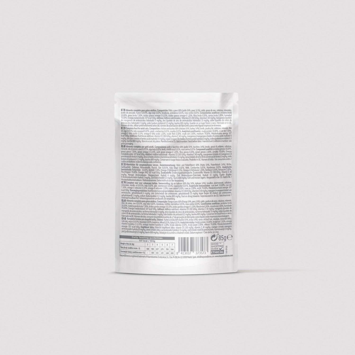 Essas suculentas almôndegas sem cereais são preparadas com deliciosos pedaços de frango e peru fresco, cenoura, ervilhas e alga kelp. Tudo isso elaborado com frutas e vegetais 100% naturais e frescos. O resultado? Uma mordida macia, suculenta e deliciosa que o seu gato vai adorar. Cada almôndega é cozida nos seus próprios sucos, como se fosse feita para humanos, mas com todos os nutrientes que o seu melhor amigo precisa. Ricas em proteínas e ácidos graxos ômega 3 e 6, as nossas almôndegas para gatos não são apenas saborosas, mas também altamente nutritivas. O nível de palatabilidade é máximo, e o seu gato vai beneficiar-se de todos os nutrientes enquanto desfruta de uma refeição verdadeiramente apetitosa. Não é apenas uma refeição, é uma experiência! Então, por que não oferecer ao seu gato uma comida que o fará saltar de alegria? Com as nossas almôndegas para gatos Flavours of the Farm da Harper & Bone, tanto você quanto o seu gato ficarão felizes. Experimente hoje mesmo e transforme a hora da refeição em um momento especial.