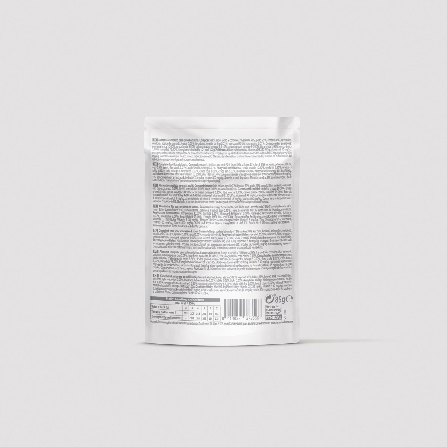 As nossas almôndegas para gatos Fresh Market Harper & Bone são a solução que você procurava — e o seu gato sonhava. Macias, suculentas e deliciosas, esses delicados bocados estão repletos de ômega 3 e 6 e foram especialmente preparados para nutrir o seu melhor amigo, sendo feitos na nossa própria cozinha com carnes selecionadas, frutas e vegetais frescos e naturais. A nossa receita exclusiva e caseira destaca-se pela composição com carnes nobres como porco ibérico, frango e cordeiro, além de deliciosos pedaços de abóbora fresca, ervilhas e maçã. Com a nossa dedicação e abordagem inovadora, criamos uma linha de alimentação única e diferenciada no mercado. O resultado é um produto que não é apenas delicioso, mas também nutritivo. O nível de palatabilidade é máximo. Com a nossa gama de receitas, a nutrição do seu gato nunca foi tão fácil nem tão saborosa!