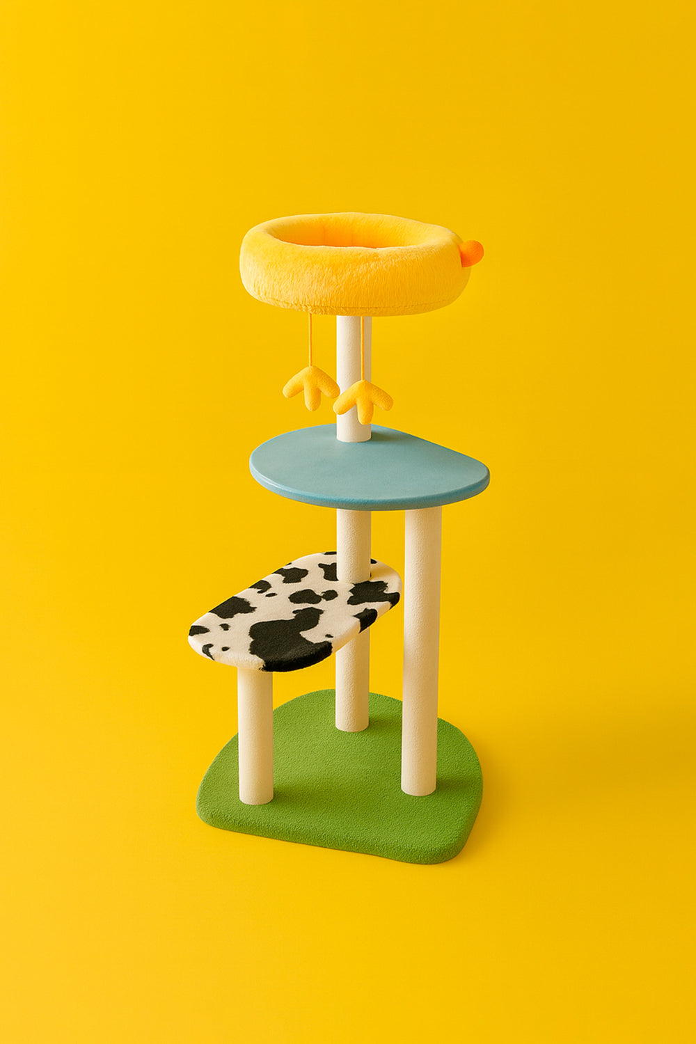 O Farm Chicken Cat Tree combina brincadeira, descanso e estilo em um design inspirado em uma fazenda divertida, com um ninho amarelo macio em forma de pintinho no topo, plataformas coloridas e postes resistentes para arranhar. Seu gatinho poderá escalar pelos diferentes níveis, afiar as unhas nos postes revestidos de sisal e observar tudo do alto, como se cuidasse do próprio galinheiro. Além disso, sua estética única e colorida transforma qualquer cantinho da sua casa em um espaço encantador.