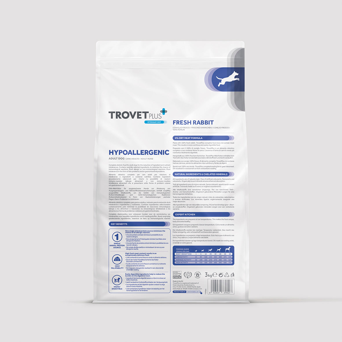 Contém ingredientes cuidadosamente selecionados para minimizar a possibilidade de reações imunológicas (alergia alimentar) ou reações não imunológicas (intolerância alimentar) em forma de problemas cutâneos e/ou gastrointestinais.