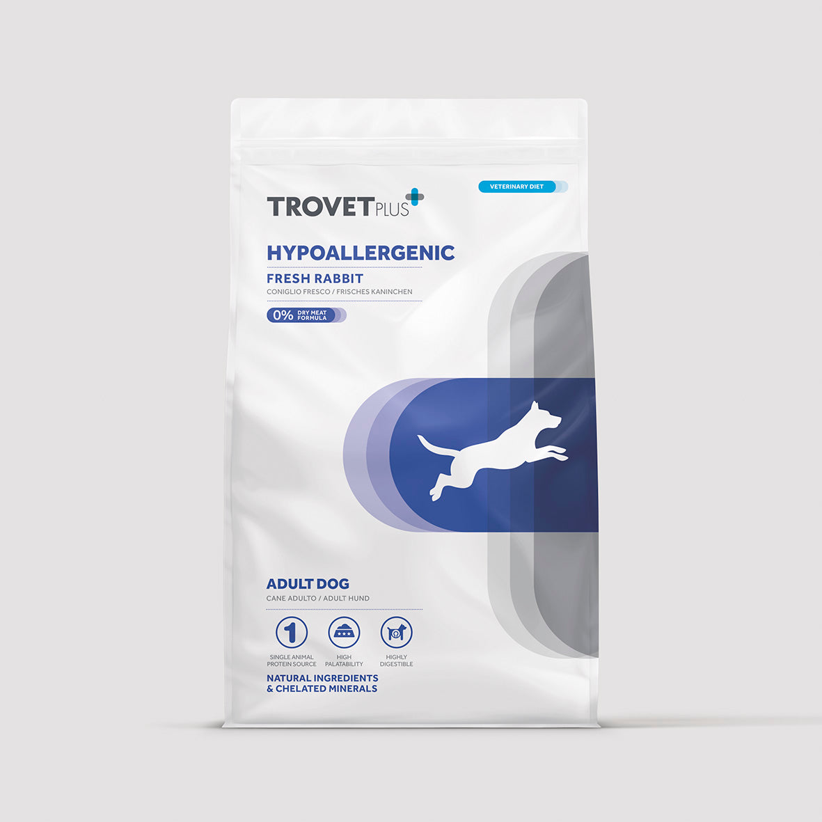 Alimento dietético completo para cães adultos, indicado para a redução da intolerância a ingredientes e nutrientes.
