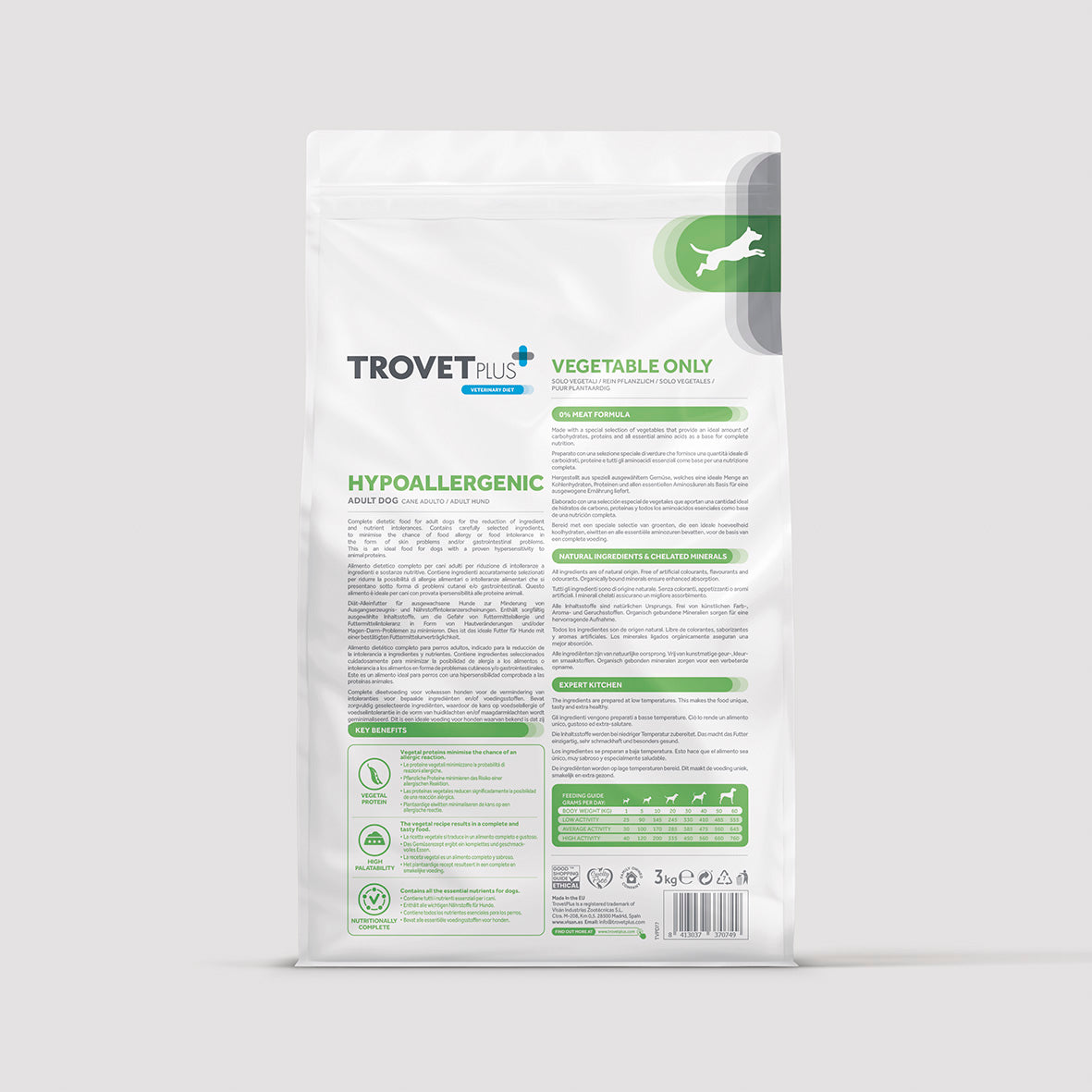 Contém ingredientes cuidadosamente selecionados para minimizar a possibilidade de alergia alimentar ou intolerância alimentar sob a forma de problemas cutâneos e/ou gastrointestinais. Este é um alimento ideal para cães com hipersensibilidade comprovada às proteínas animais.