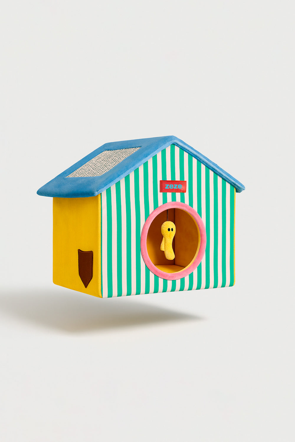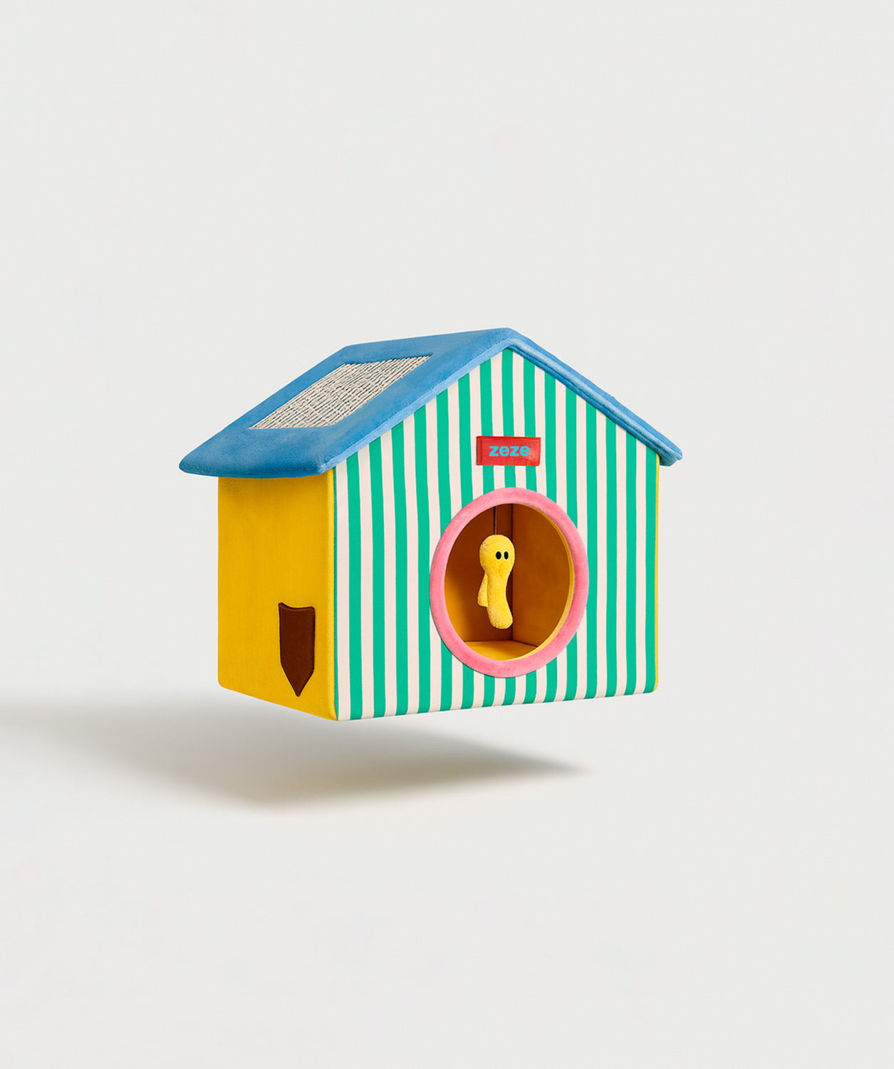 A Casinha Listras da Zeze é muito mais do que uma simples cama: é um pequeno lar cheio de conforto, diversão e estilo. Com seu design divertido de listras verdes, detalhes em cores vibrantes e um teto azul acolchoado, esta casinha vai se tornar o refúgio favorito do seu gatinho e um acessório encantador para a sua casa. Seu gato poderá entrar e sair quando quiser, se aconchegar dentro para uma soneca tranquila ou se entreter com o brinquedo pendurado na entrada. E como sabemos que os gatos adoram arranhar, o teto foi especialmente projetado com uma superfície perfeita para manter as unhas fortes e saudáveis sem danificar os seus móveis.
