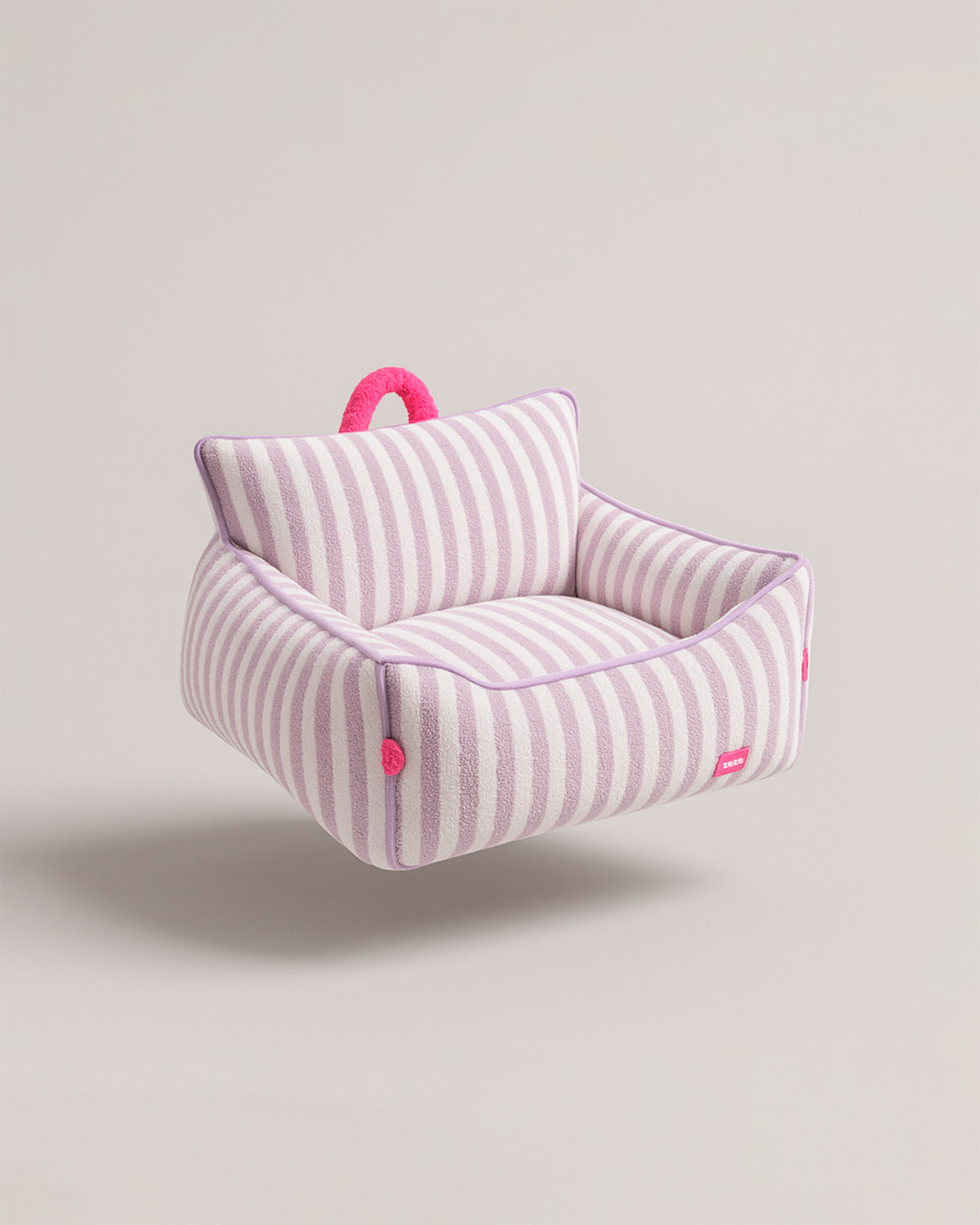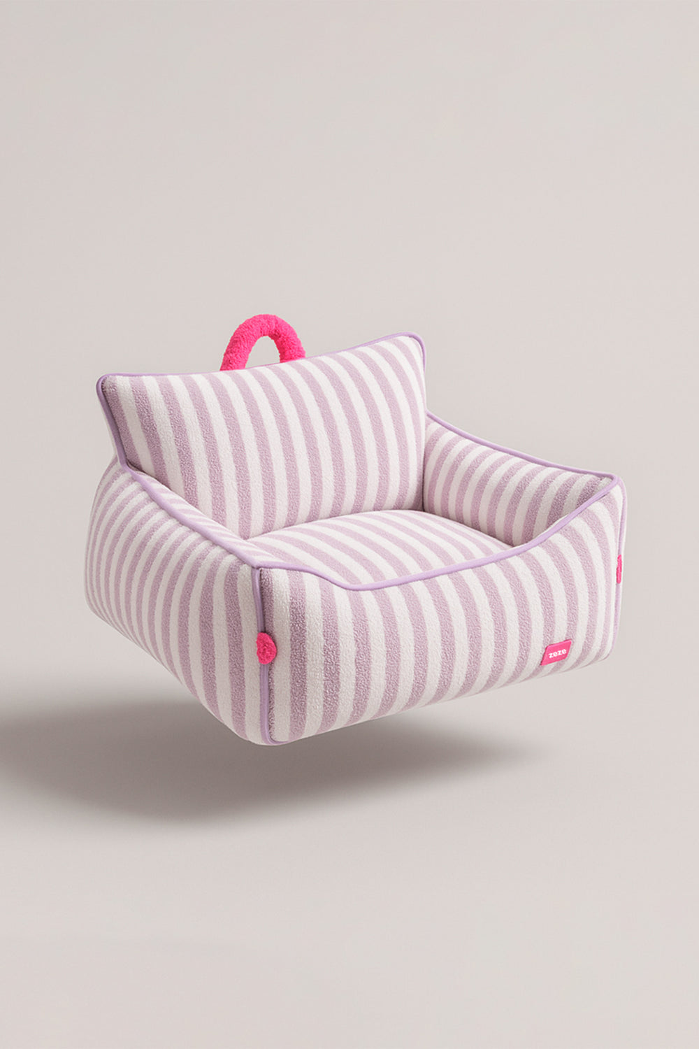 Um cantinho de descanso cheio de estilo: o Sofá Stripes combina um design moderno às riscas com um conforto irresistível para a tua mascote. A sua estrutura elevada e o acolchoamento macio criam um espaço quente e seguro onde o teu patudo terá o seu próprio trono digno de foto.