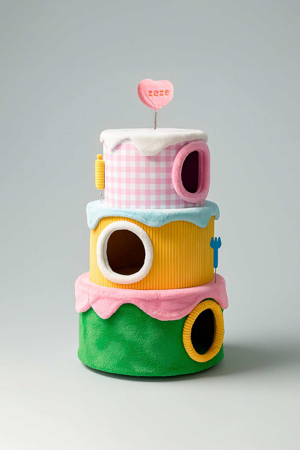 O Cat Tree Cake Power combina diversão, descanso e estilo em um design único inspirado em um delicioso bolo de aniversário.